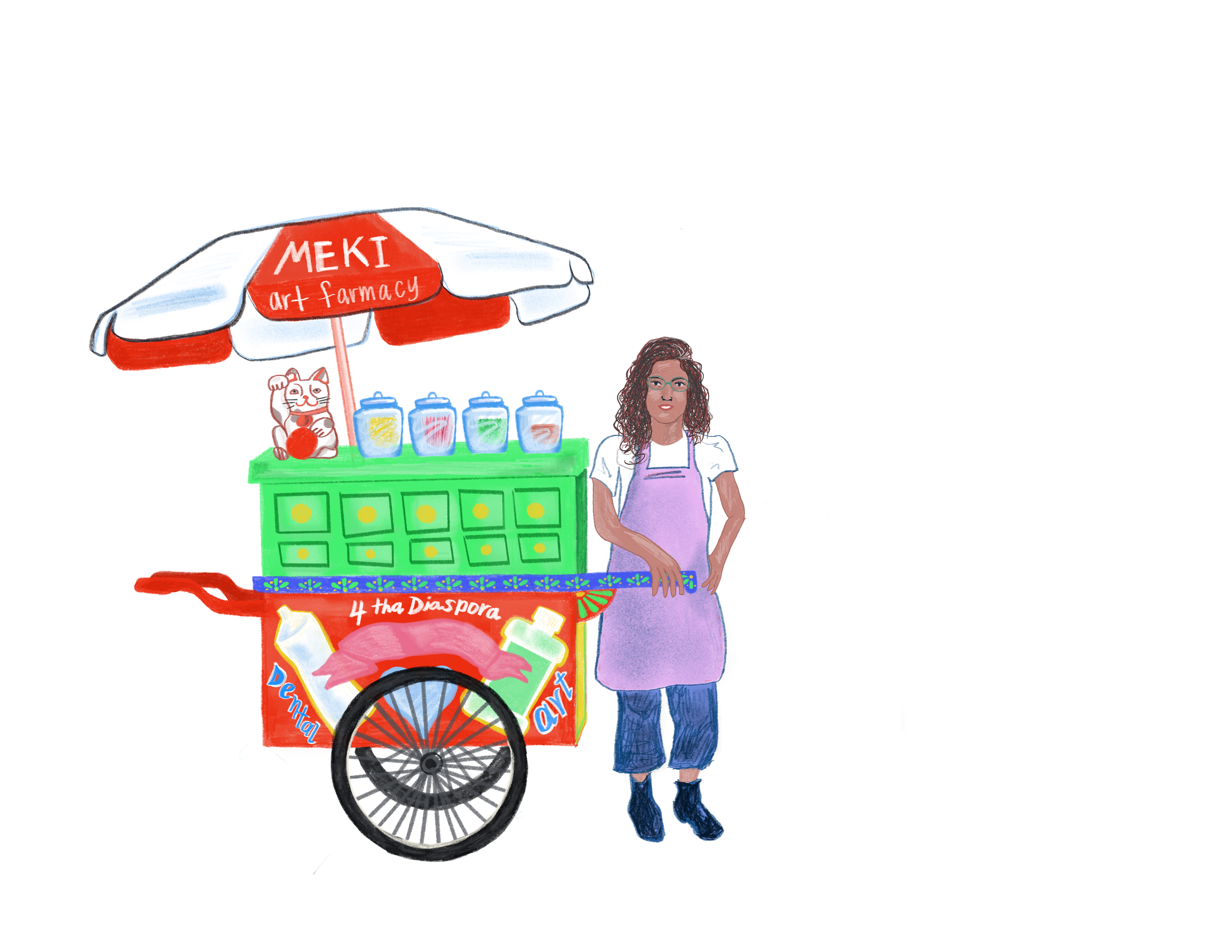 MEKI creates art objects disguised as everyday essentials. We hope our pieces spark an ancestral twinkle in your eyes while being useful in everyday life. They are objects to use, display, or dream with. They bring us closer to the flavors, histories, and memories that keep us rooted in our ancestral lands across space and time as diasporic people.